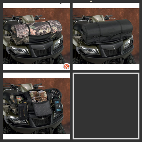 Quality cargo system with riveted straps and carrying handles adds true functionality to your ATV. Rigid bag mounts easily to your ATV's front or rear rack. Mounting straps and detailed instruction set are included. Clamshell zippered top flap provides full access to three-section storage compartment. Three weather-resistant flaps work to exclude the elements, and protect your cargo. Two outside pockets with a key clip help you stow and organize your gear. External mesh storage pocket permits quick access to your favorites (drink bottle, tools, etc). The finest materials are combined to create a rugged water resistant fabric case (in black or Mossy Oak Break-Up camouflage)which resists the elements and cleans up easily with a damp cloth.