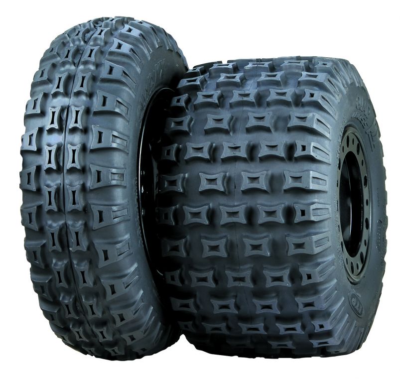 Tested and developed with the assistance of the factory Yamaha and Kawasaki race teams, the QuadCross MX PRO is designed specifically for very hard-packed, blue-groove type motocross racetracks. The QuadCross MX PRO utilizes designs that have resulted in significantly better performance than the original QuadCross MX tire. A revised shoulder profile greatly improves cornering predictability and side bite, while a specially formulated soft rubber compound finds traction for excellent acceleration and braking on the slickest of surfaces. The front QuadCross MX uses a dual-ribbed dimpled knob pattern that steers precisely with a very light feel and reduced lateral roll. The ITP QuadCross MX PRO is available in front 20x6-10 and rear 18x10-8 sizing. A QuadCross tire is now available for smaller sport ATVs as well, in an 18x8-8 rear size. Light, fast and surprisingly durable, it's the edge every ATV racer is looking for! And we mean every racer! This is not a limited-production tire available to only select riders at national events. At ITP, they race what they sell, and sell what they race.